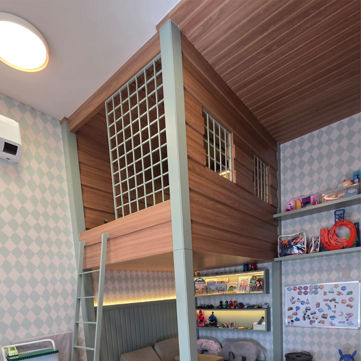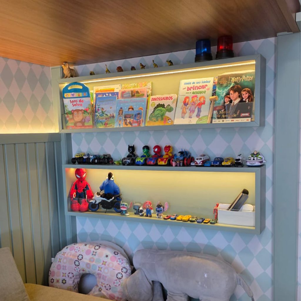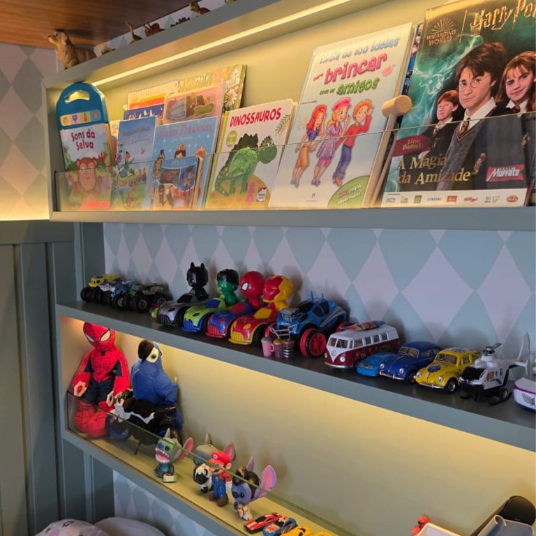A brinquedoteca é o lugar onde a imaginação ganha espaço para acontecer. Por isso, criamos ambientes planejados que unem diversão, organização e segurança, com móveis pensados para a rotina das crianças e a tranquilidade dos adultos. Nichos, prateleiras, baús, estantes e armários na altura certa ajudam a manter tudo acessível e fácil de guardar — incentivando autonomia e mantendo o ambiente sempre agradável.